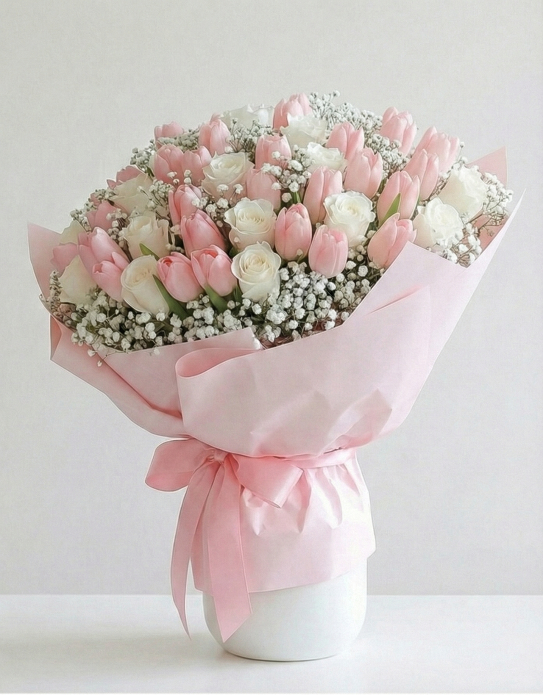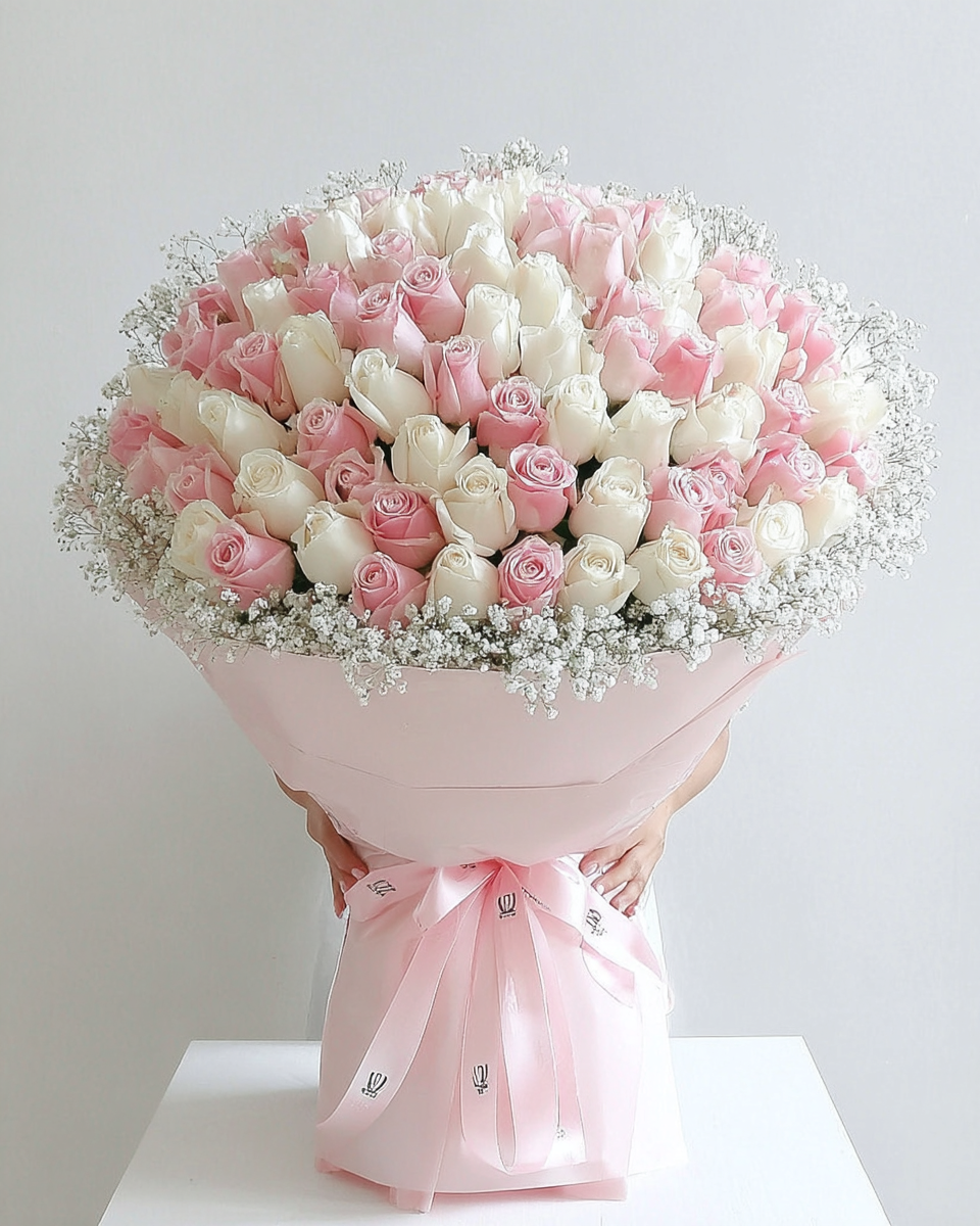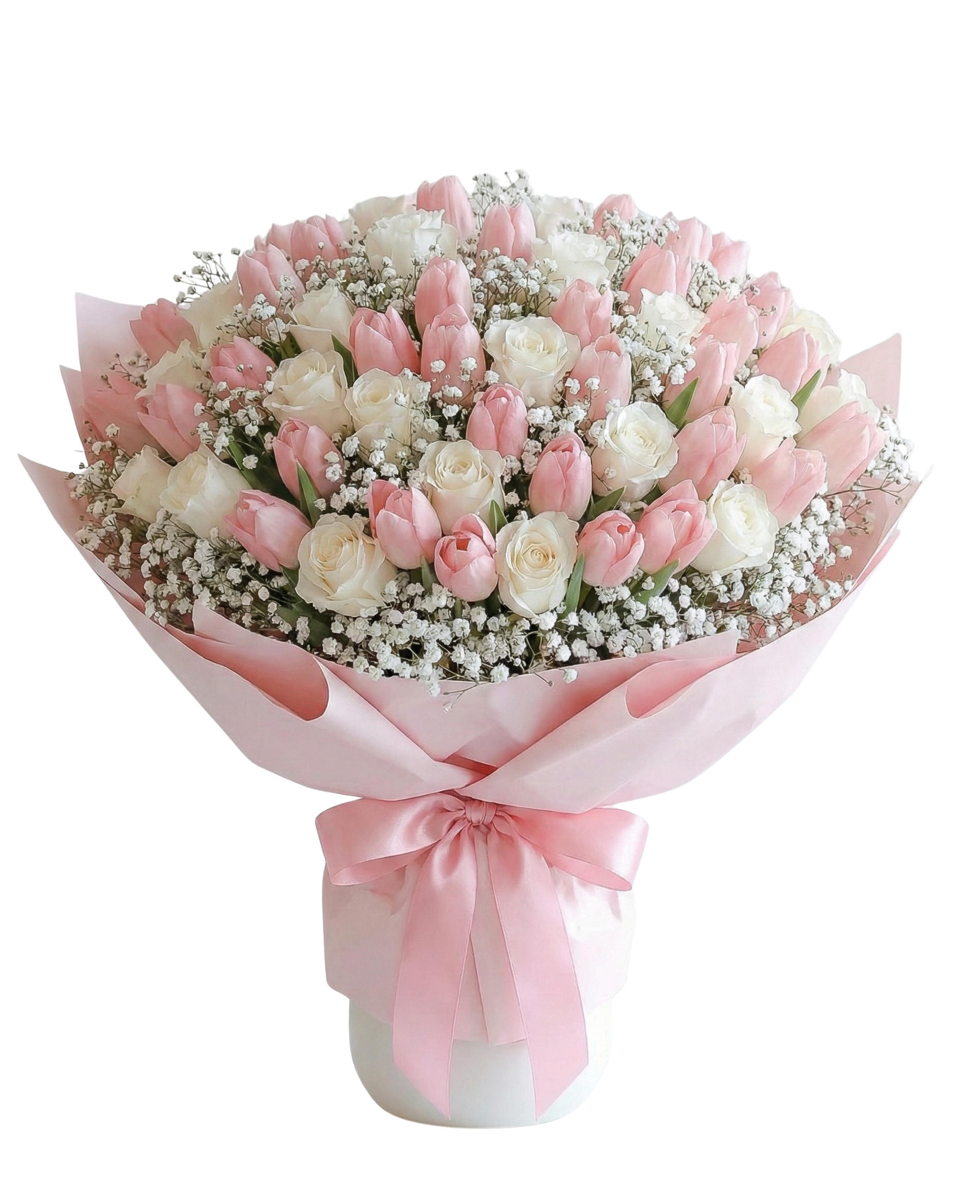 Pink & Ivory Roses with Tulips – Luxury Signature Bouquet