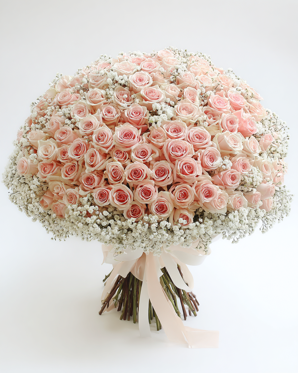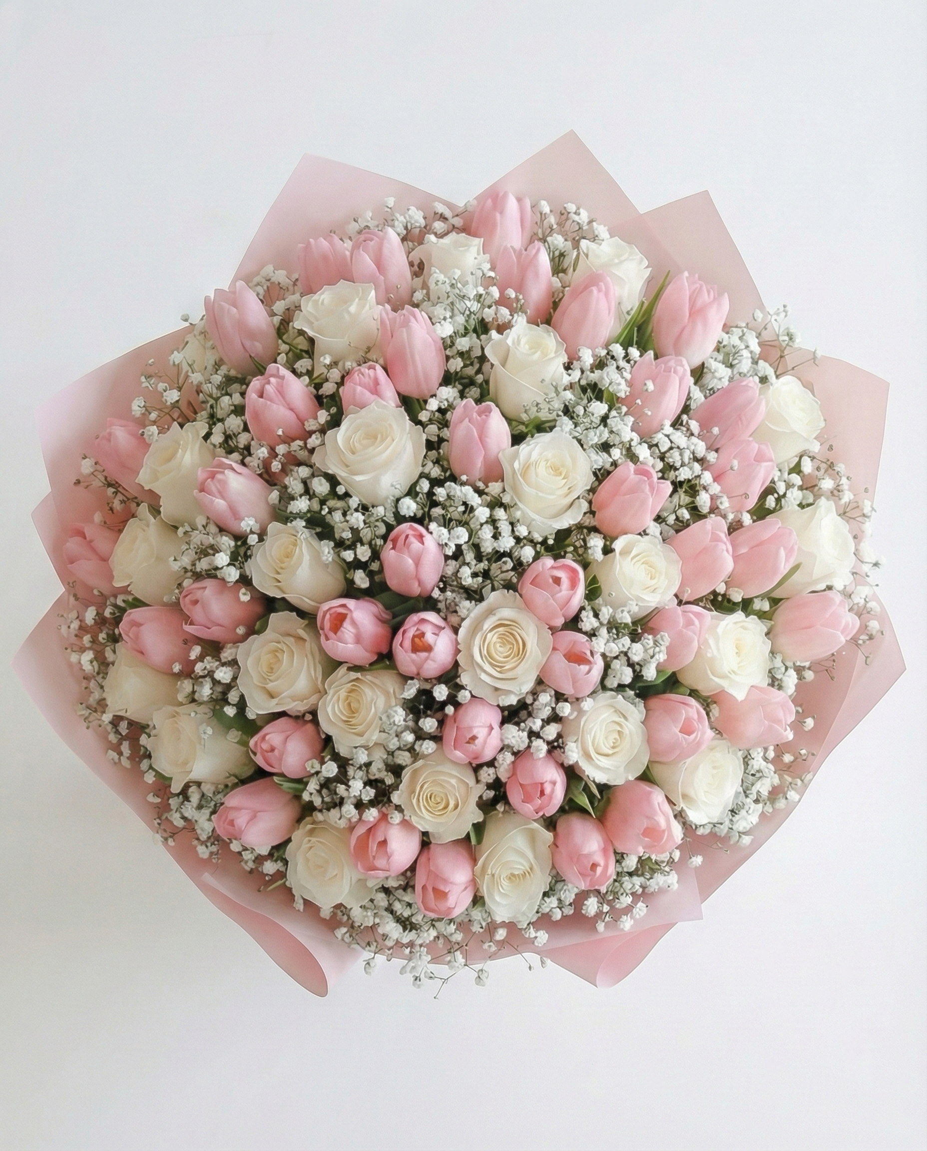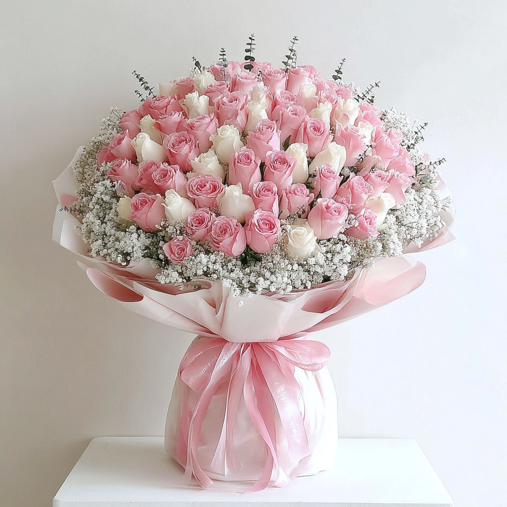 Pink & Ivory Roses with Tulips – Luxury Signature Bouquet