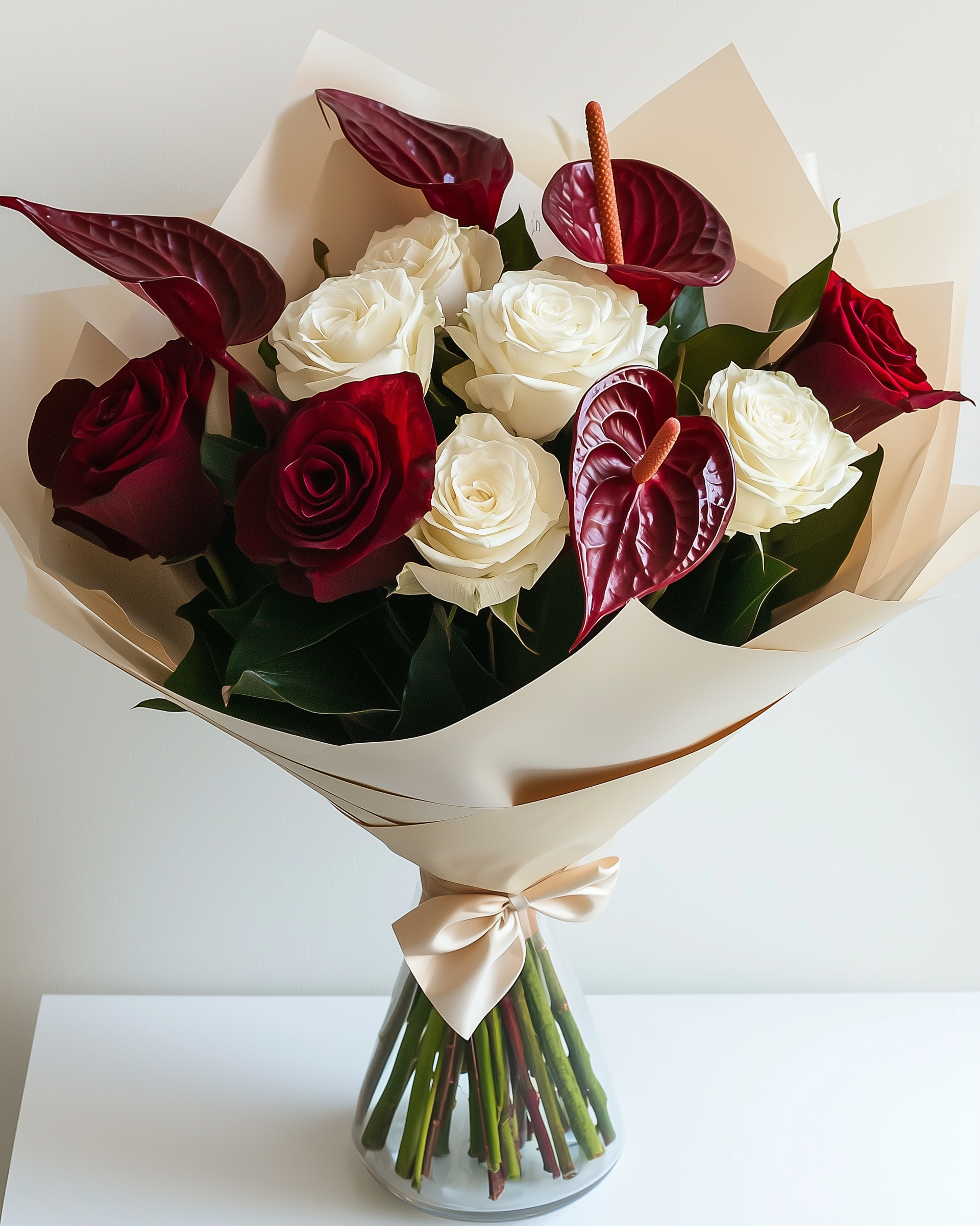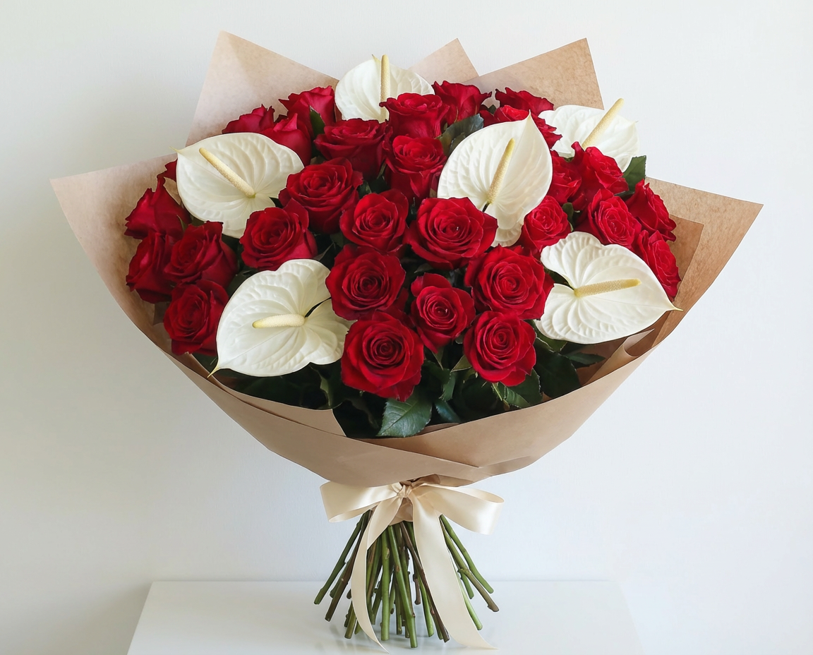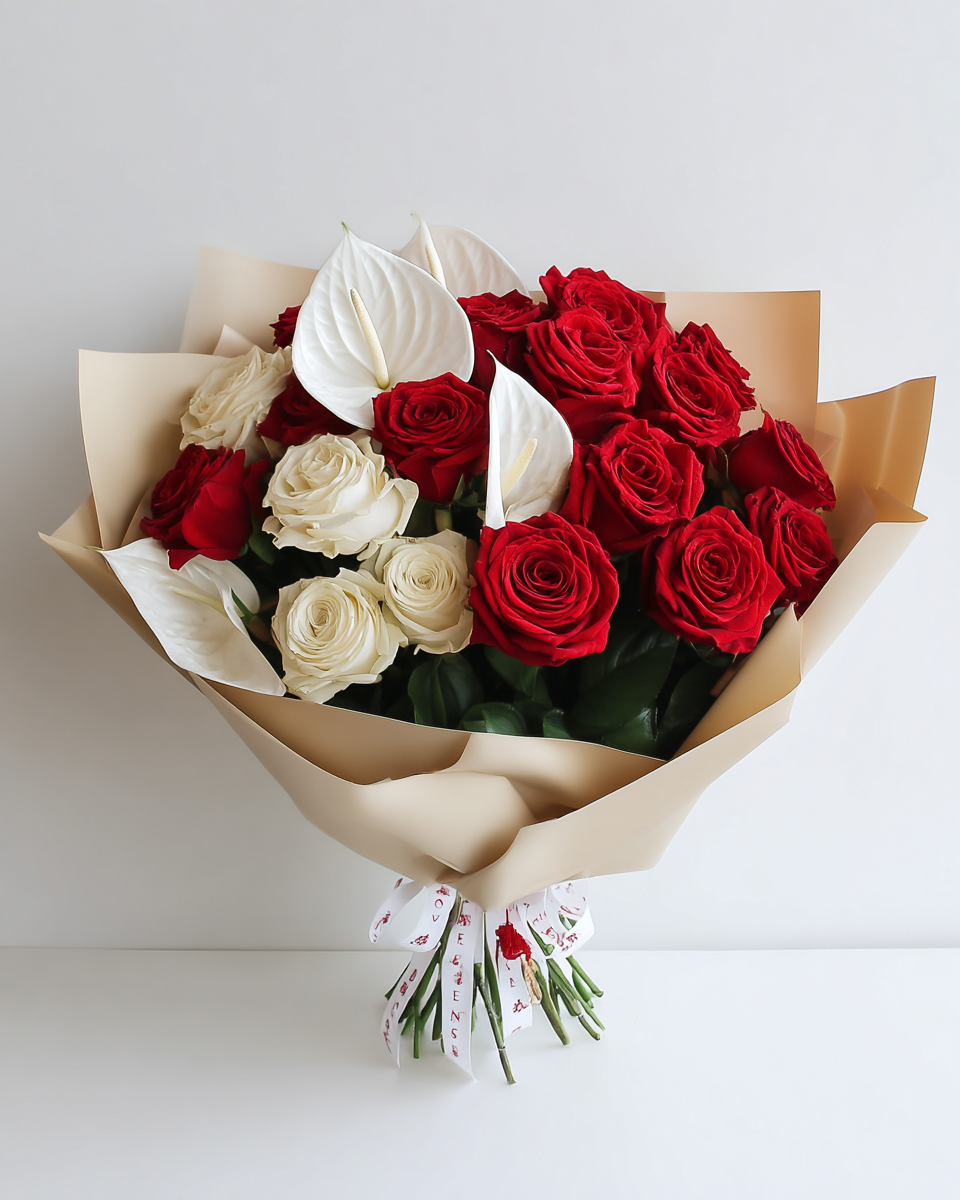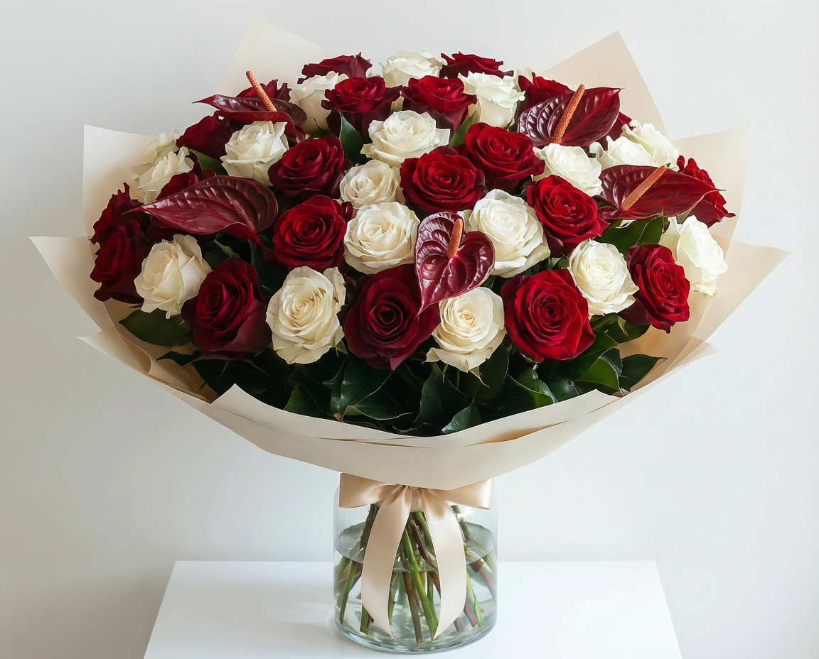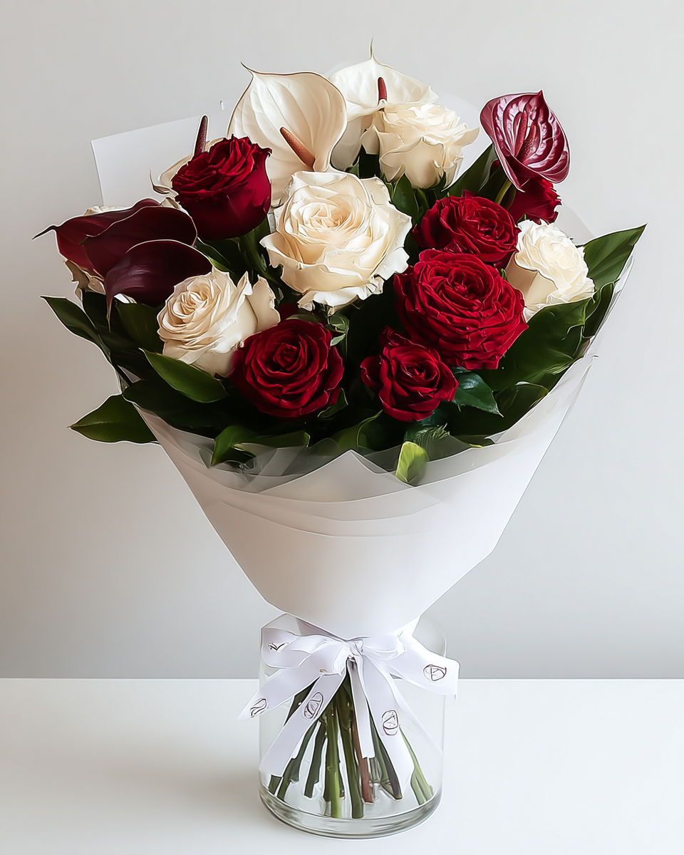 Crimson Ivory – Luxury Rose Arrangement