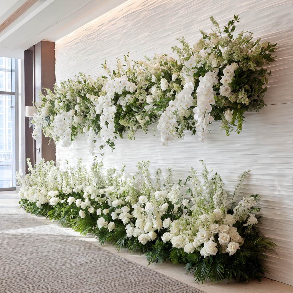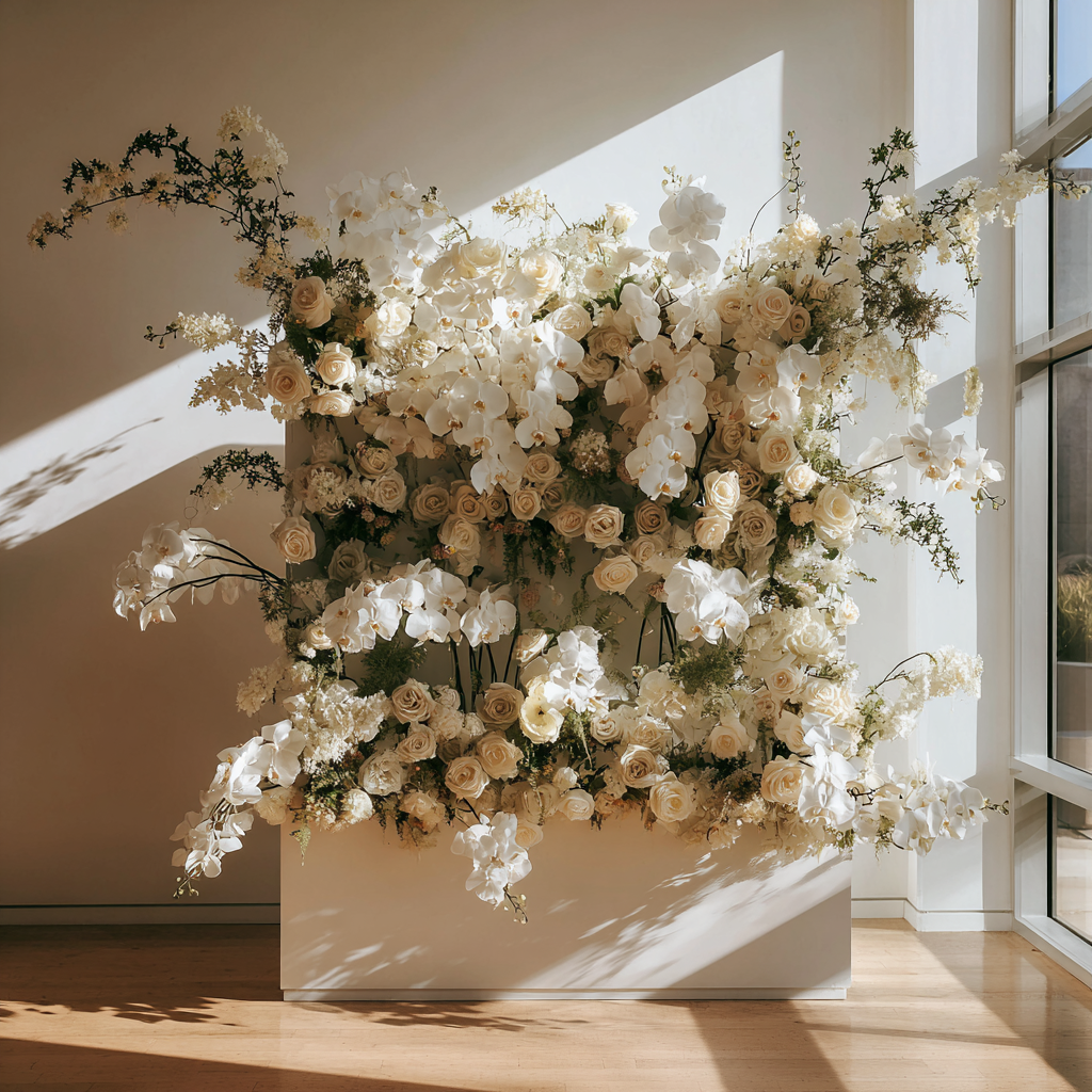 Architectural Floral Installations is a luxury collection of large-scale sculptural floral environments designed to transform spaces into immersive art. From custom floral wall installations and statement wedding backdrops to high-end retail and hospitality displays, each piece is crafted to elevate architecture through texture, depth, and refined botanical design.