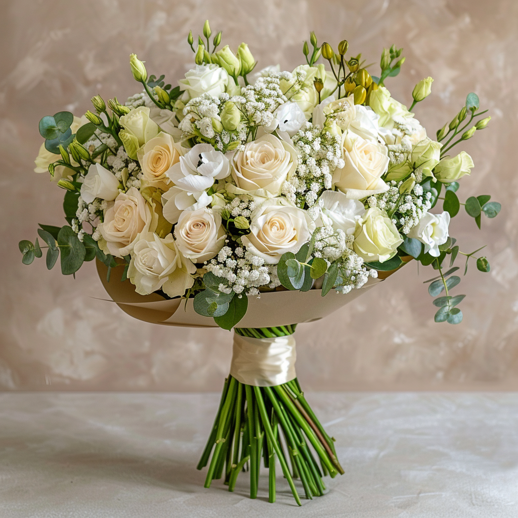 Our Sympathy Collection offers refined, oversized floral arrangements in soft ivory, white, and neutral tones. Designed with premium roses, peonies, hydrangeas, and seasonal blooms, each bouquet conveys elegance, comfort, and respect.